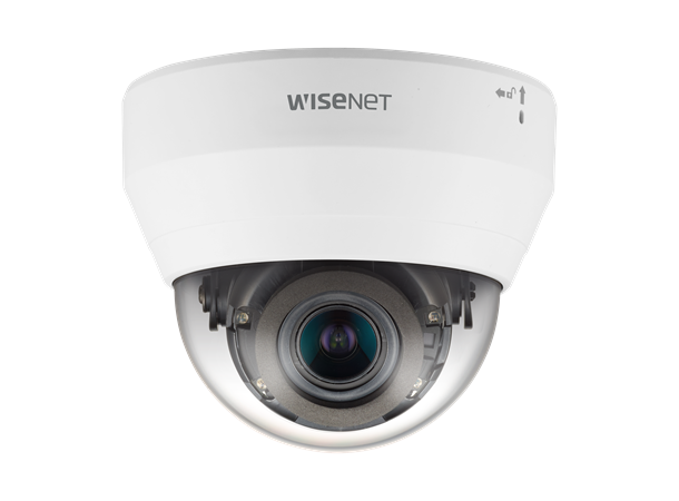 Wisenet Q network IR indoor dome camera, 2MP @30fps, 3.2 ~ 10.0mm motorized varifocal lens (3.1x) (109.0°~33.2°), triple codec H.265/H.264/MJPEG with WiseStream II, Multiple streaming, 120dB WDR, True Day & Night (ICR), IR viewable length 20m, Motion detection, Tampering, Defocus detection, Hallway View, Bi-directional audio and microSD/SDHC/SDXC slot, LDC support (Lens Distortion Correction), PoE/12VDC