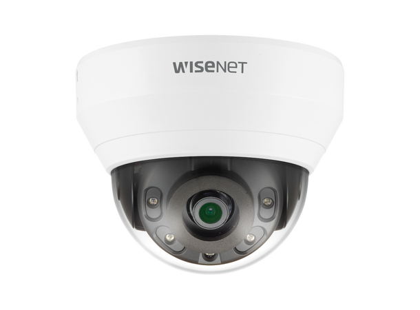 Wisenet Q network IR outdoor vandal dome camera, 4MP @30fps, 3.6mm fixed lens (81°), triple codec H.265/H.264/MJPEG with WiseStream, Multiple streaming, 120dB WDR, True Day & Night (ICR), IR viewable length 25m, Motion detection, Tampering, Defocus detection, Hallway View, 1-way audio and microSD/SDHC/SDXC slot, LDC support (Lens Distortion Correction), IP66, IK10, PoE/12VDC