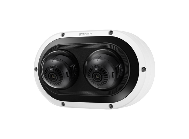 Wisenet P network AI based multi-directional dual sensor outdoor vandal dome camera, 2 x 2MP@25/30fps, 360 degree 25m IR, 3~6mm motorised varifocal lenses, WiseNR II, Auto prefer shutter control, WiseStream III, ExtremeWDR (120dB), Hallway View, Analytics AI Object detection with classification: Person, Face, Vehicle, License plate and vehicle attributes Car, Bus, Truck, Motorcycle, Bicycle, Virtual line (Crossing/Direction), Virtual area (Loitering/Intrusion/Enter/Exit), BestShot, Motion detection, Defocus detection, Tampering, SD Card slot 512GB max, PoE+, Secure by Default, TPM 2.0 (FIPS 140-2), IP66, NEMA4X, IK10. Compatible with SPM-4210 I/O IP box to connect alarms/audio devices and support camera's audio detection and sound classification analytics