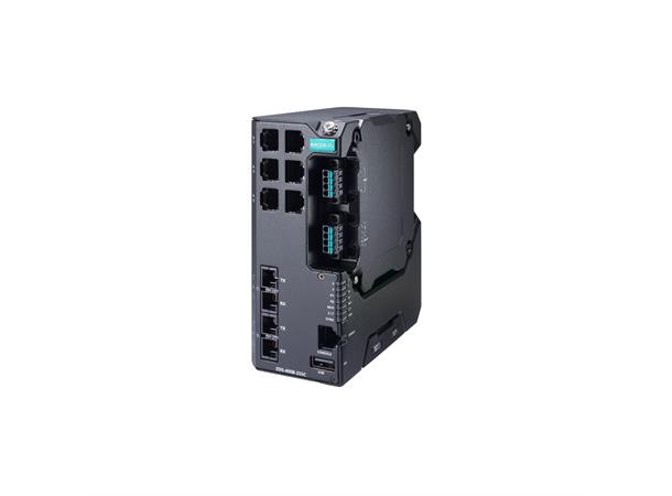Managed Gigabit Ethernet switch with 4 10/100BaseT(X) ports, 2 10/100/1000BaseT(X), 2 100/1000BaseSFP ports, dual power inputs 12/24/48 VDC, -40 to 75°C operating temperature