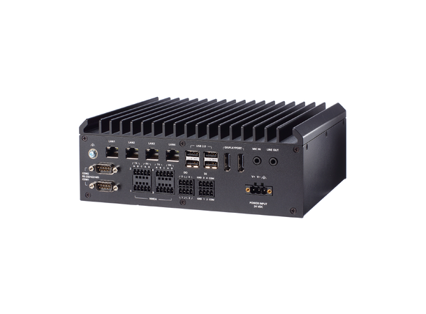 Intel® Core™ i3-1115G4E, 2C/4T, 2.2 GHz computer with 2 DisplayPorts, 4 GbE ports, 2 RS/232/422/485 3-in-1 serial ports, 1 NMEA port, 4 DIs, 4 DOs, 2 USB 3.0 ports, 4 USB 2.0 ports, TPM 2.0, 24 VDC power input, -20 to 55°C operating temperature at full CPU speed, maritime.